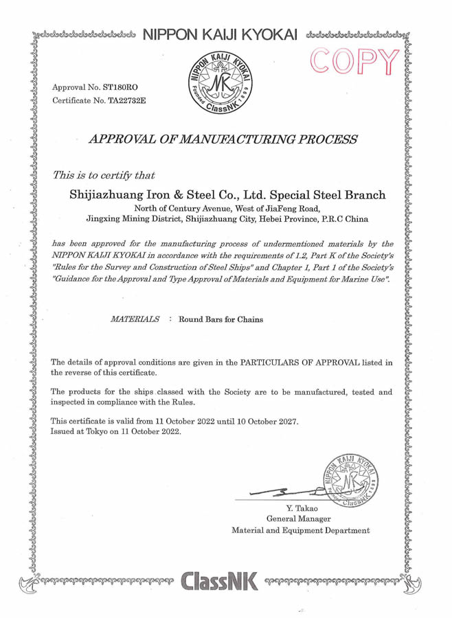 日本船級社證書NK                                              中國船級社工廠認可證書CCS